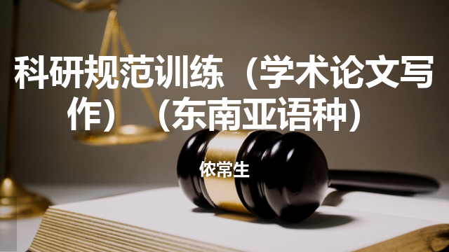 科研规范训练(学术论文写作)是东南亚语种专业大三的综合实践课程,着重介绍学术研究的目的和意义,了解与文学、语言学、翻译、文化等方向的基础理论与研究方法,掌握研究论文与毕业论文写作的要求和规范,提高学生的学术研究能力。课程内容主要包括论文写作的写作过程和要素;文学、语言学、翻译、文化等方向优秀论文赏析;各研究方向的写作思路和要领等。通过本课程的学习,学生应了解学术论文的目的和意义,掌握学术研究的基本方法,知道如何选题,如何收集、整理、筛选数据资料,如何论证,如何撰写论文开题报告、论文提纲,与完整的论文。